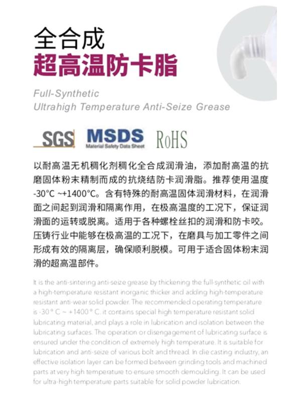 廈門威馬工貿(mào)有限公司位于美麗的花園城市-廈門市同安區(qū),公司專營合成高溫油脂系列產(chǎn)品。產(chǎn)品分為:高溫鏈條油、高溫潤滑脂、高低溫潤滑脂等系列油品。廣泛應(yīng)用于:定型機(jī)、噴涂/噴粉、巖棉等高溫潤滑設(shè)備,本品無煙,無殘渣,屬于全合成高溫油系列,可寄樣試用,長期服務(wù)全國客戶。